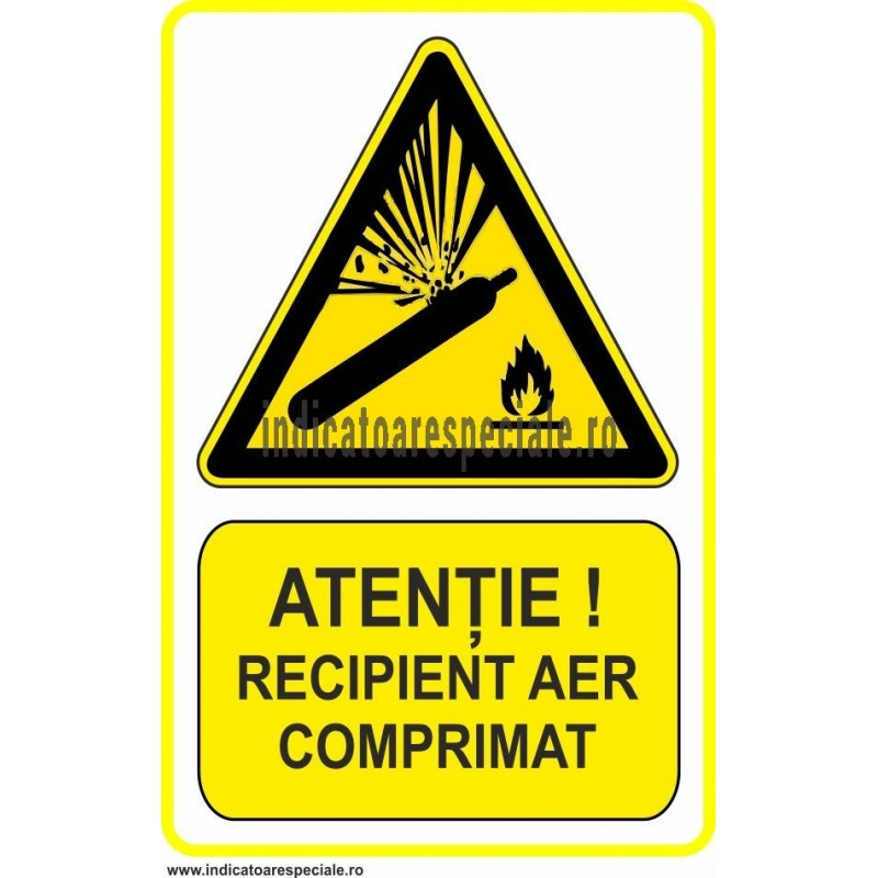 Indicator de avertizare insotit de textul explicativ: ATENTIE ! Recipient aer comprimat.