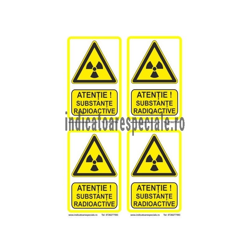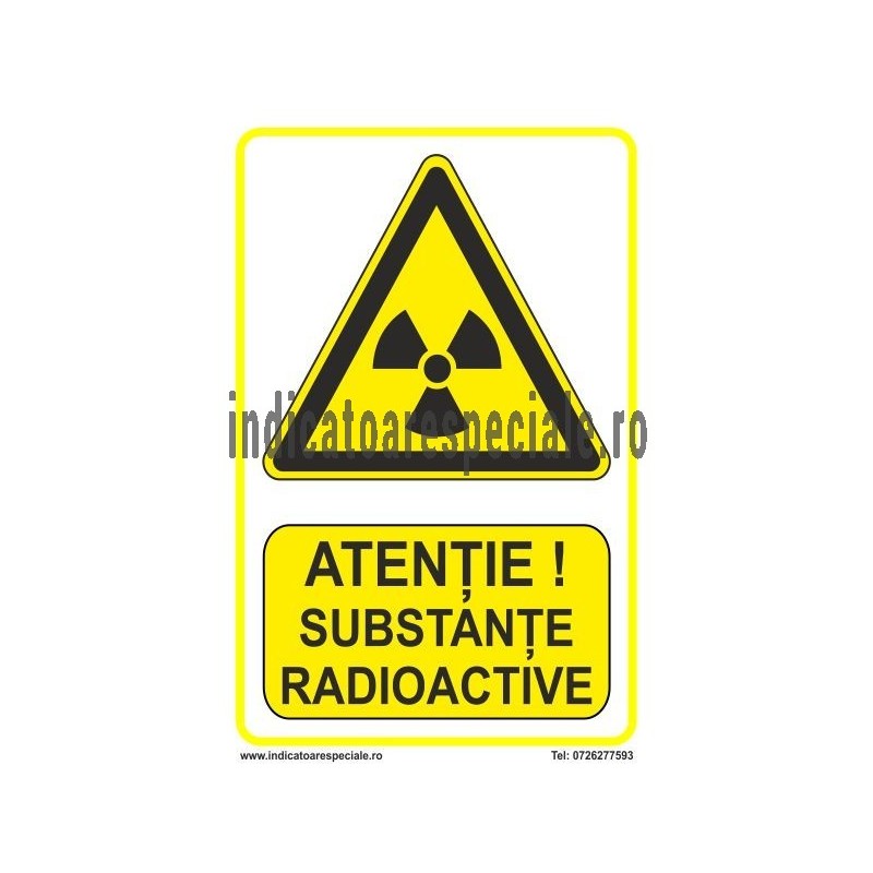 Indicator de avertizare insotit de textul explicativ: ATENTIE ! Substante Radioactive
