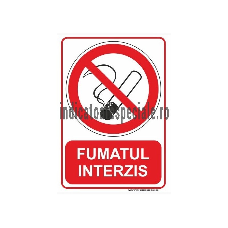 Indicator de interzicere a fumatului in zona, suprafata, sala sau incinta respectiva, insotit de inscriptia explicativa in panoul suplimentar de culoare rosie: FUMATUL INTERZIS
