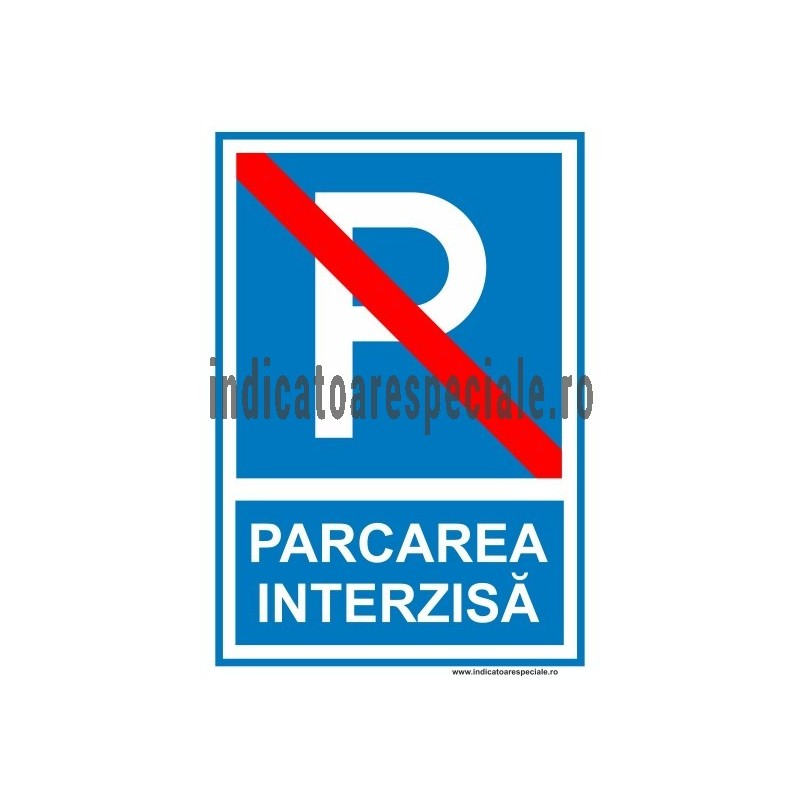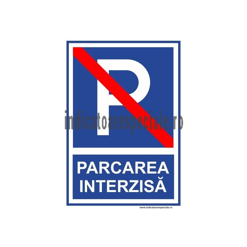 Indicator de obligativitate cu pictograma, insotit de textul explicativ: PARCAREA INTERZISA