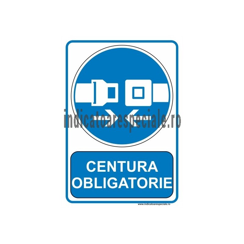 Indicator de obligativitate, insotit de textul explicativ: Centura OBLIGATORIE (Portul centurii obligatoriu)