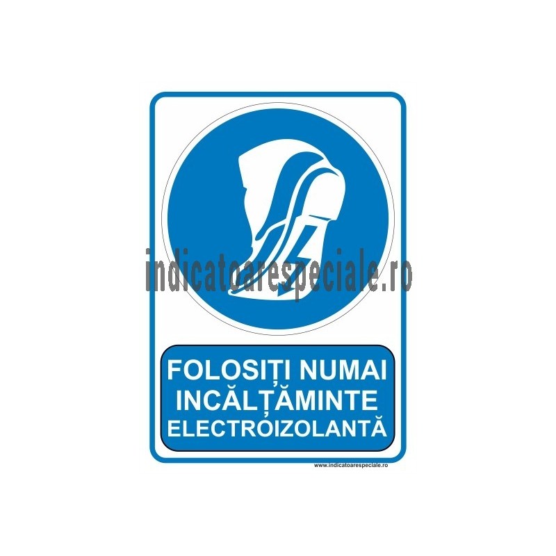 Indicator de obligativitate, insotit de textul explicativ: Folositi NUMAI incaltaminte electroizolanta