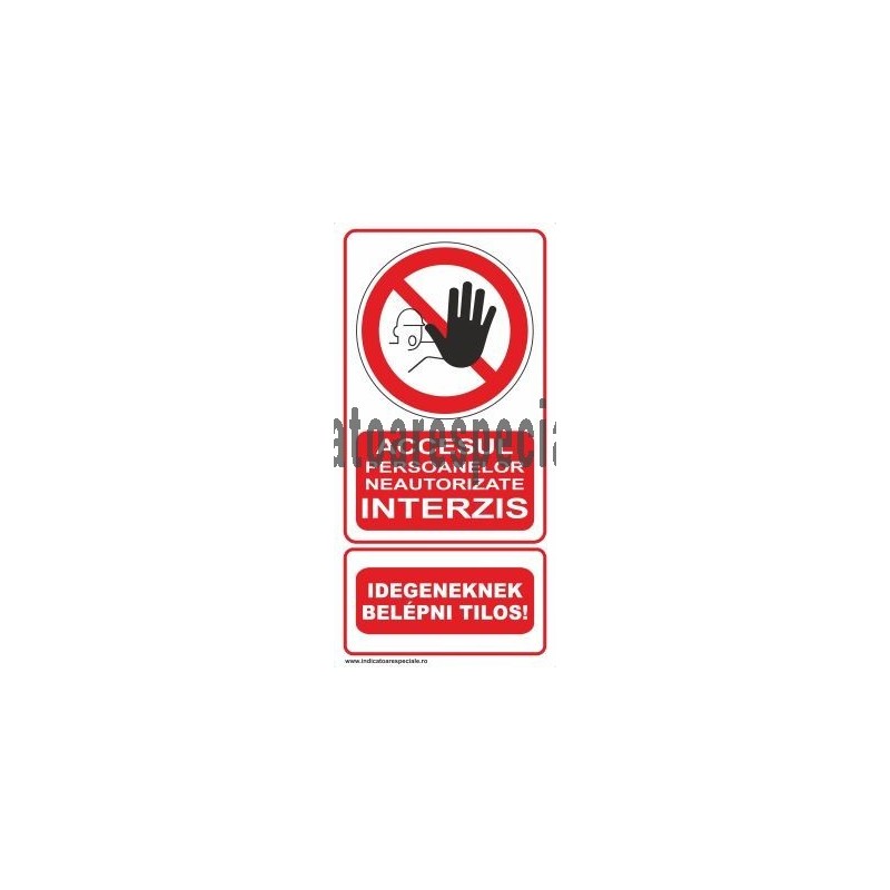 Indicator de interzicere, insotit de textul explicativ: Accesul persoanelor neautorizate INTERZIS, Bilingv