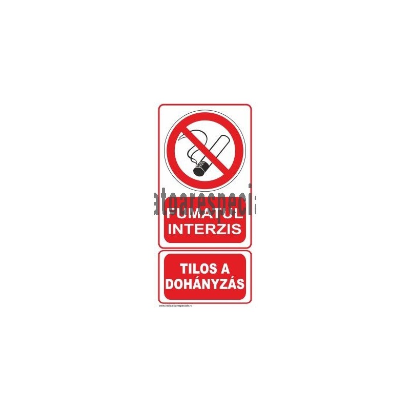 Indicator de interzicere insotit de textul explicativ: FUMATUL INTERZIS, Bilingv