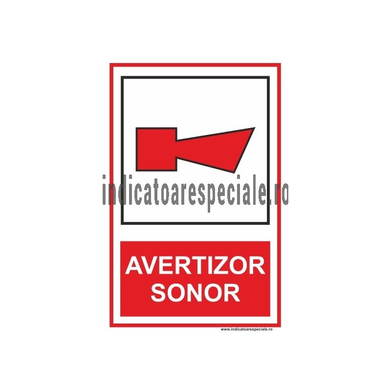 Indicator de identificare si localizare a instalatiilor de avertizare in caz de situatii de urgenta, insotit de textul explicativ: AVERTIZOR SONOR