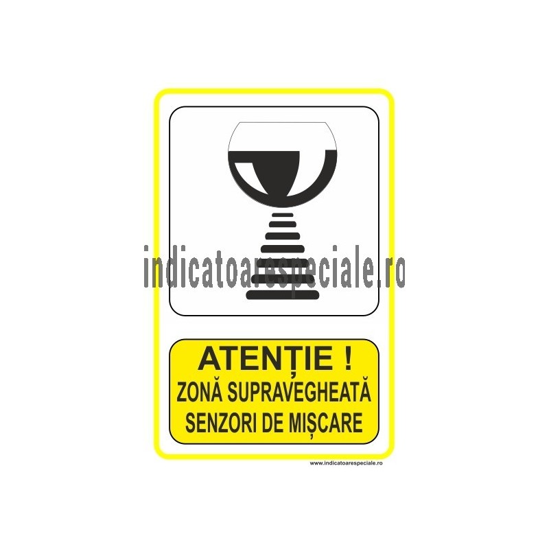 Indicator de avertizare insotit de textul explicativ: ATENTIE ! Zona supravegheata - Senzori de miscare