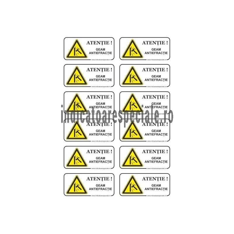 Indicator de avertizare insotit de textul explicativ: ATENTIE ! GEAM ANTIEFRACTIE